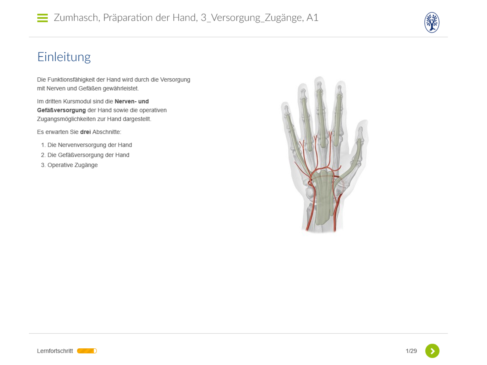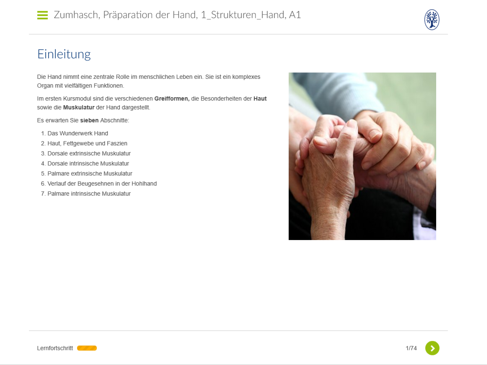 Der Online-Fortbildungskurs „Präparation der Hand“ bietet eine komfortable Alternative: Er vermittelt anschaulich die Anatomie, Strukturen und Funktionen der Hand anhand realer Präparate.